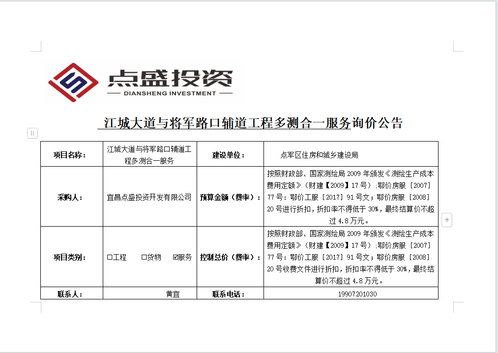 江城大道與將軍路口輔道工程多測(cè)合一服務(wù)詢價(jià)公告